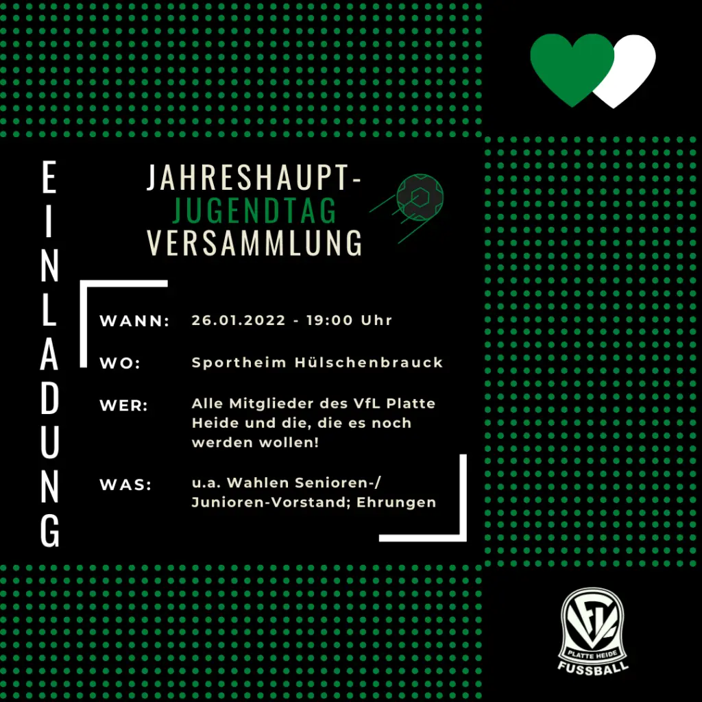 📢 Einladung zur Jahreshauptversammlung/Jugendtag des VfL Platte Heide- Fußballabteilung! 🏆